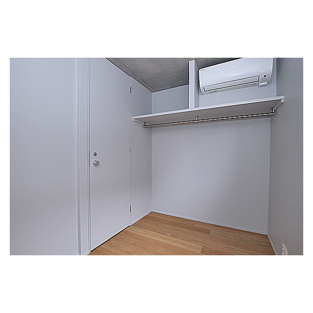 ベッドルームにはポールが付いているので衣類収納に!