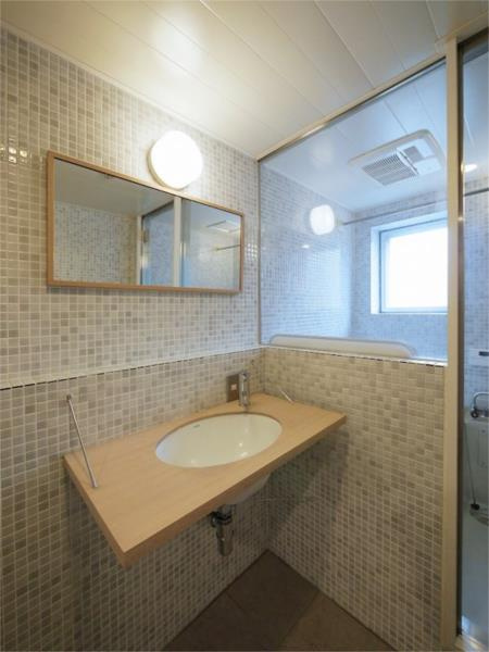タイル張りの洗面所はホテルのようなおしゃれな空間です^^