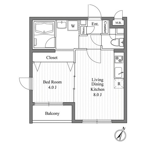 間取り 1LDK [LDK 8.0帖/洋室 4.0帖]