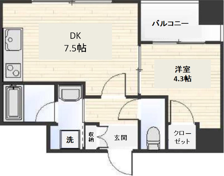 間取り 1DK「DK 7.5帖/洋室 4.3帖]